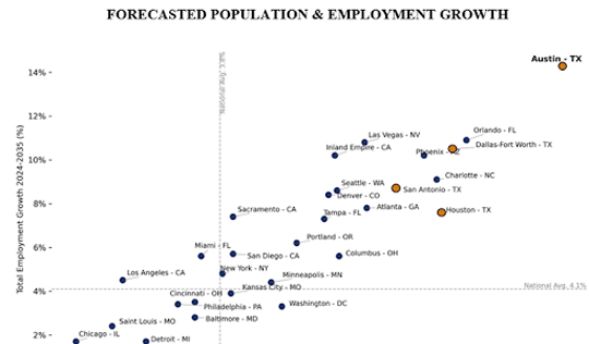 Austin is projected to be the #1 metro in America for combined population and employment growth through 2035.
